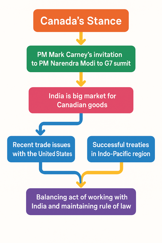 In the ever changing world political environment, Canada’s necessity to maintain rule of law RCMP investigation into murder of Nijjar has to balanced with equally important madate of fulfilling the responsibility of providing economic security and prosperity to the Canadians. In this regard, PM Mark Carney’s invitation to PM Narendra Modi to G7 summit holds great significance. India is big market for Canadians goods. While United States of America is the biggest trade partner for Canada, the recent trade issues between US and Canada, has indeed put a spotlight on possible reinvigorating of India – Canada relations. Additionally, Canada cannot have successful treaties in Indo-Pacific region by not including India. It has to be noted that while RCMP, Canadian Security Force , has put out the view it has legitimate evidence regarding people linked with Indian government, of being involved in plot to murder a Canada citizen on Canadian soil, India has vociferously denied this accusation. This point will be discussed further in the next section.